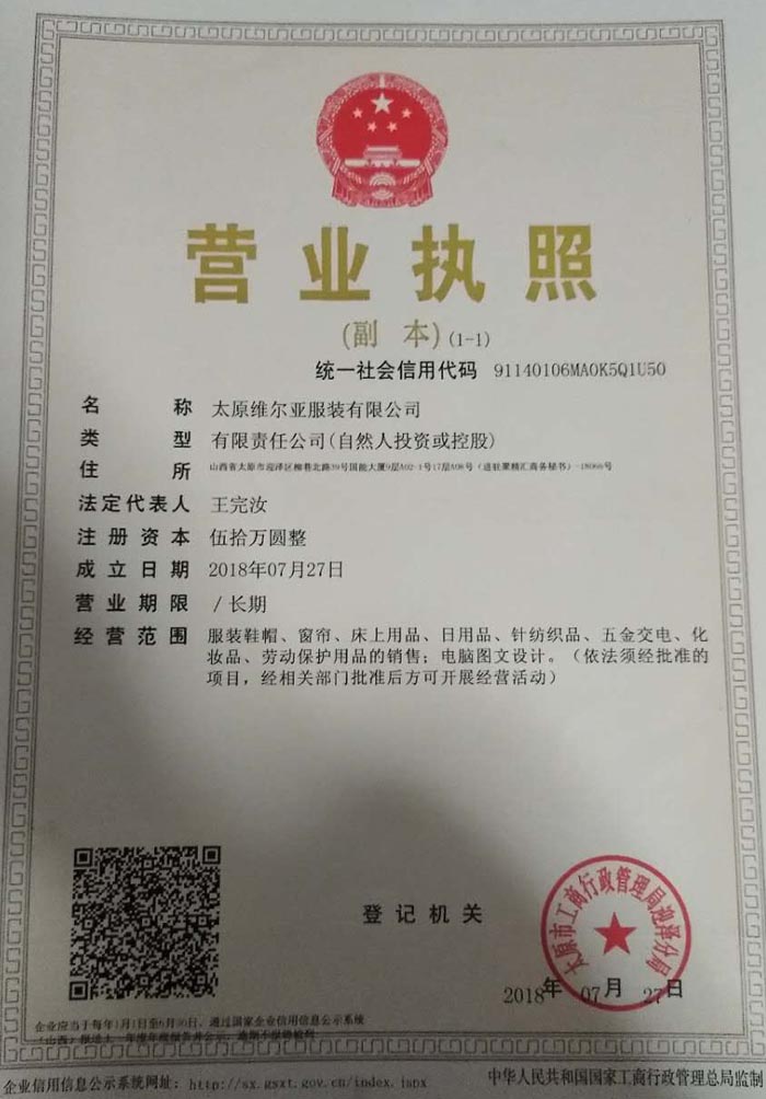>> 資質證書 太原維爾亞服裝有限公司 - www.www.whkfhy.com